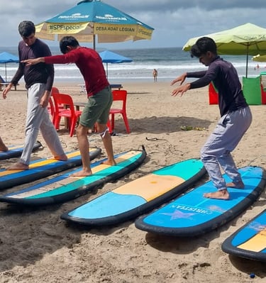 Learn surfing with GERRY SURF BALI, the best place for beginners who want to surf safely, easily, and confidently. With friendly and experienced instructors, we guarantee you will stand up on the board and enjoy your surfing experience in Bali.