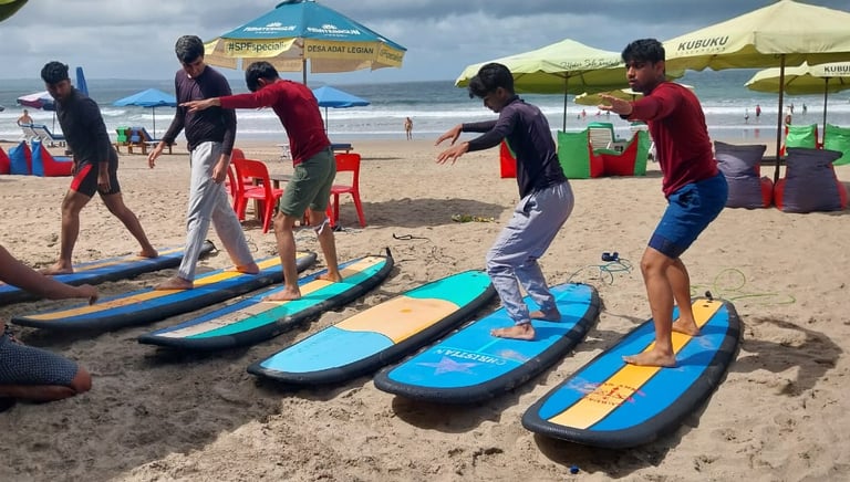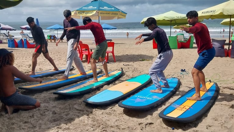 Step into the waves with lessons designed for beginners at Legian Beach.