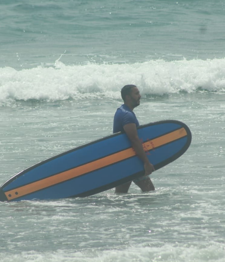 Surfing practice in the water: 1 hour 30 minutes